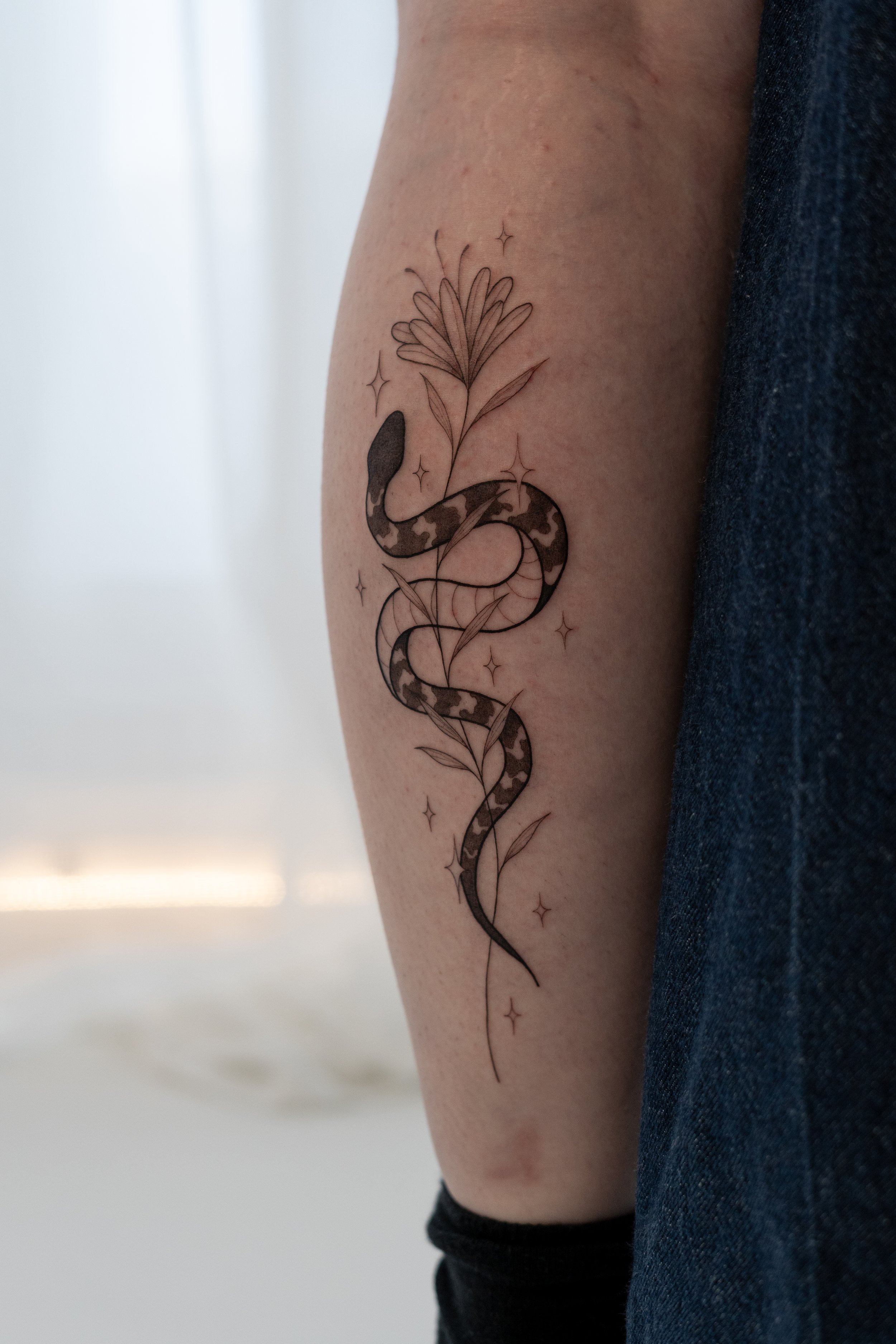 Kanssasi työskentely oli todella mukavaa, studio oli siisti ja kaunis, ja tatuoinnin suunnittelu + toteutus ihan täydellistä. Minusta tuntui todella rennolta tatsan aikana ja olin erittäin tyytyväinen lopputulokseen. Työskenty kanssasi, koko prosessi, oli helppoa ja avointa, ja olo oli koko ajan luottavainen.”